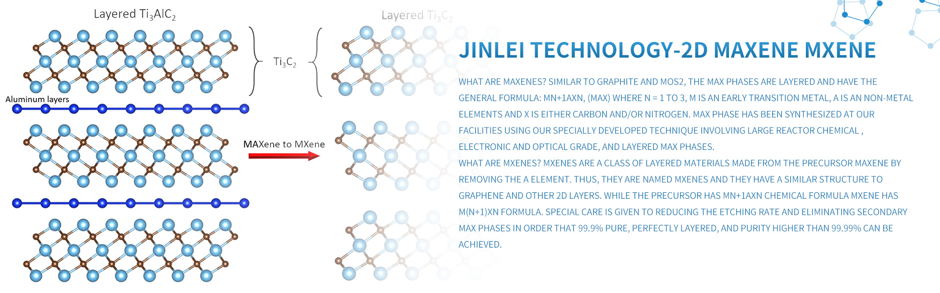 过渡金属碳化物和氮化物,被称作Mxenes。MXenes是由选择性蚀刻一个元素具有金属导电率的MAX相,通过强固的金属键、离子键和共价键连接分层的固体,比如Ti2AlC,Ti3AlC2 和Ta4AlC3。Mxenes结合过渡金属碳化物表面的羟基和氧使金属导电率终止。